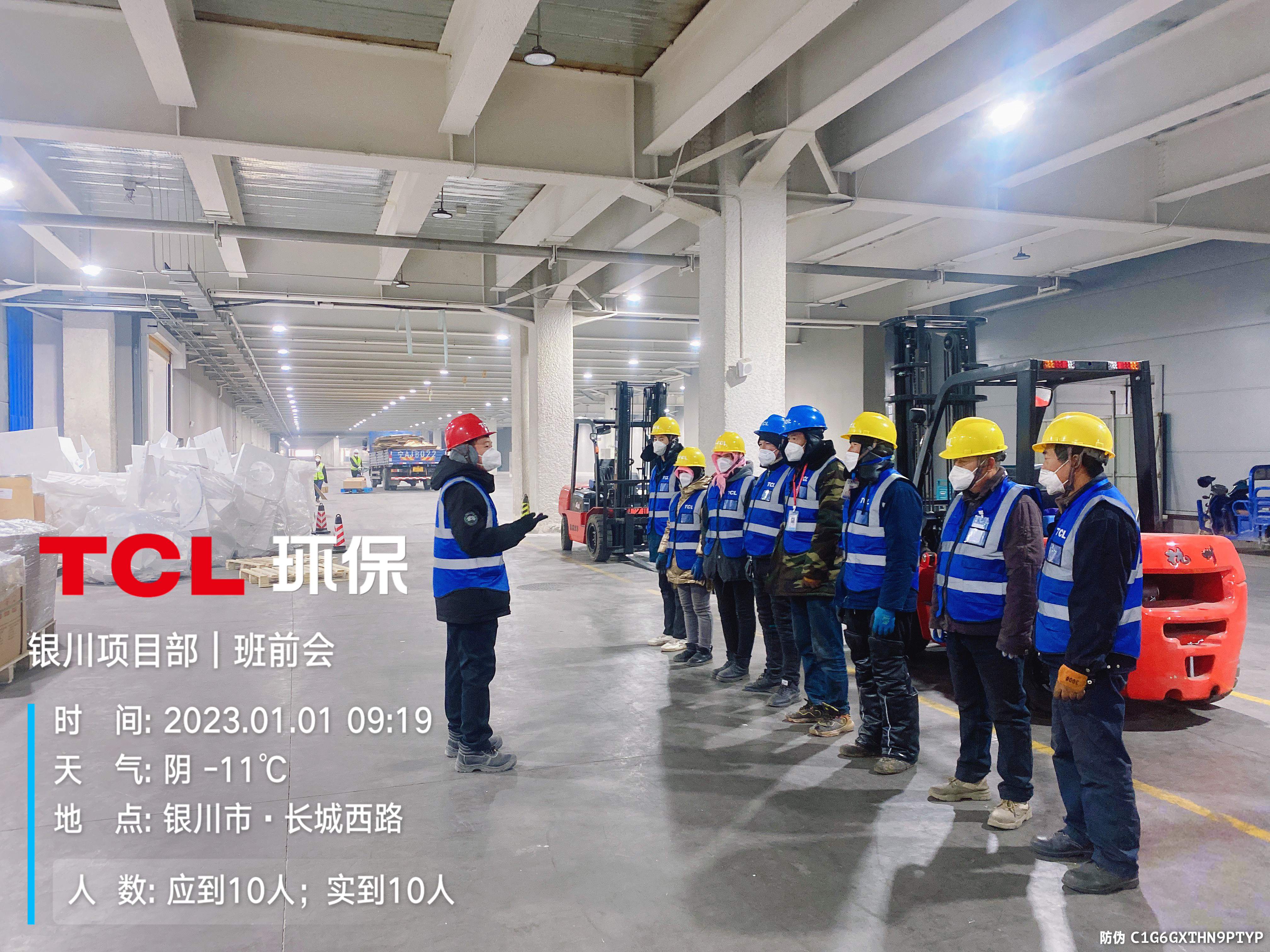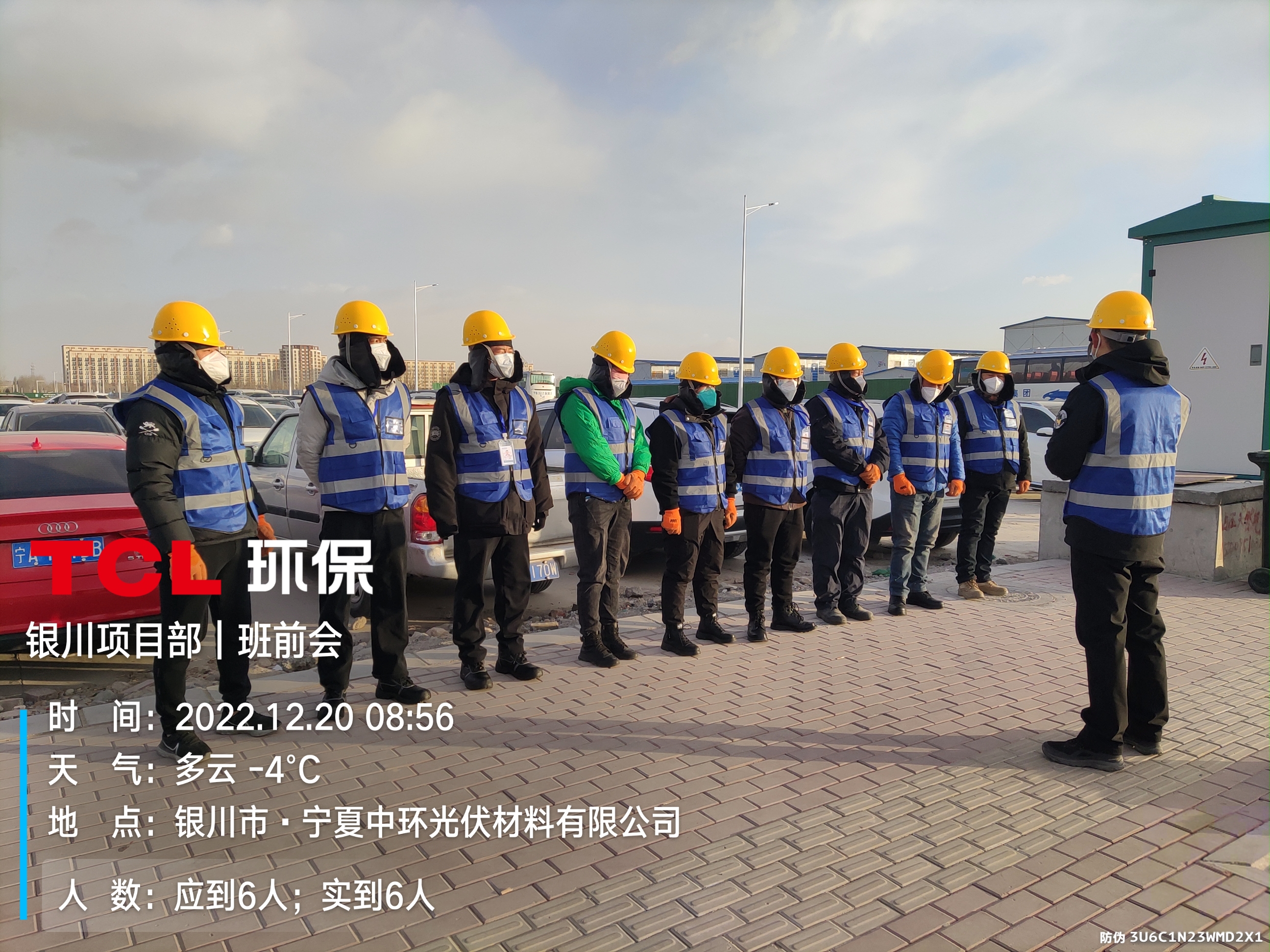 深圳TCL环科的管理员和工人在宁夏中环太阳能级单晶硅材料智慧工厂门口整齐列队,准备正式入驻厂区,为工厂提供一般固废收集整理和清运服务。银川项目部的同事们为能按时入驻中环感到心中火热,充满干劲。