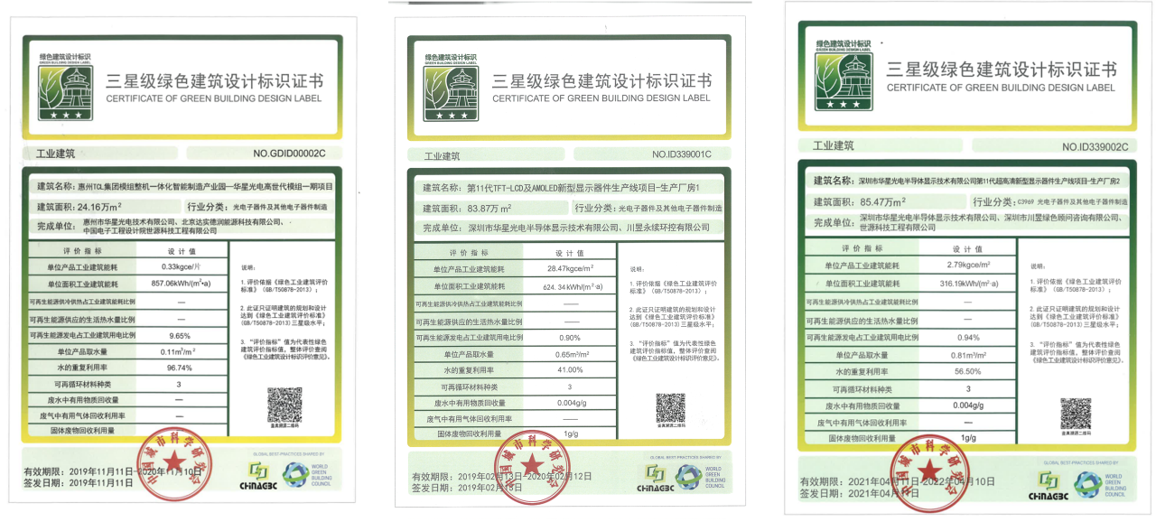 7、追踪管理绿色建筑:TCL通过机电调试追踪实现建筑能源的持续追踪管理,确保设备在运营期高效低耗运转。深圳华星t6项目获得LEED铂金和中国绿色建筑三星双认证;惠州华星获中国绿色建筑三星级认证。