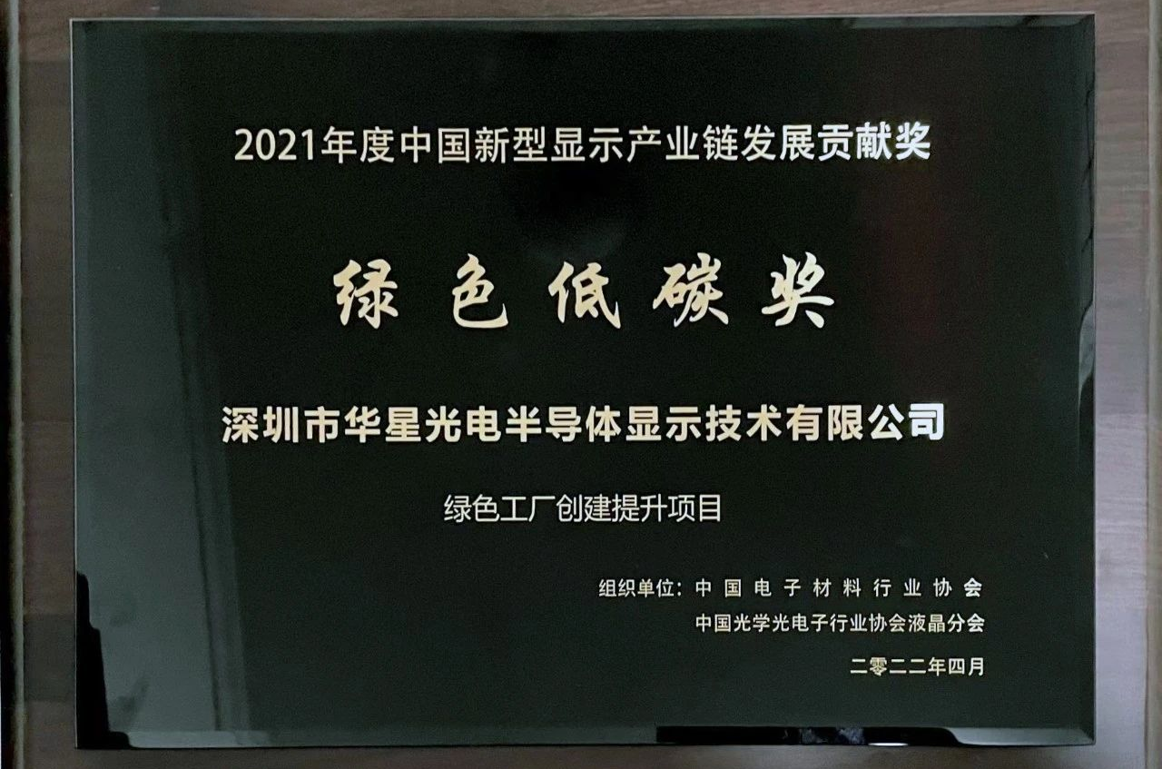 2021年度中国新型显示产业链发展贡献奖--绿色低碳奖